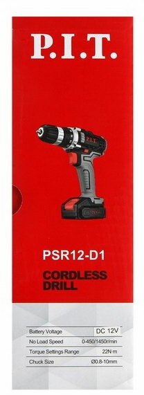 Drill-driver PSR 12-D1, 12 V, 2x1.5 Ah, Li-lon, 450/1450 rpm, 22 Nm, reverse