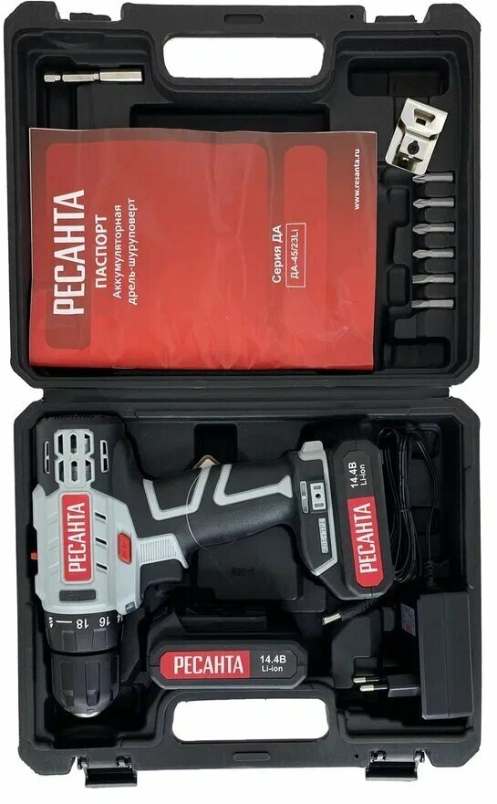 Drill/driver with battery; Additional battery; Bit-6pcs; Power adapter; Passport