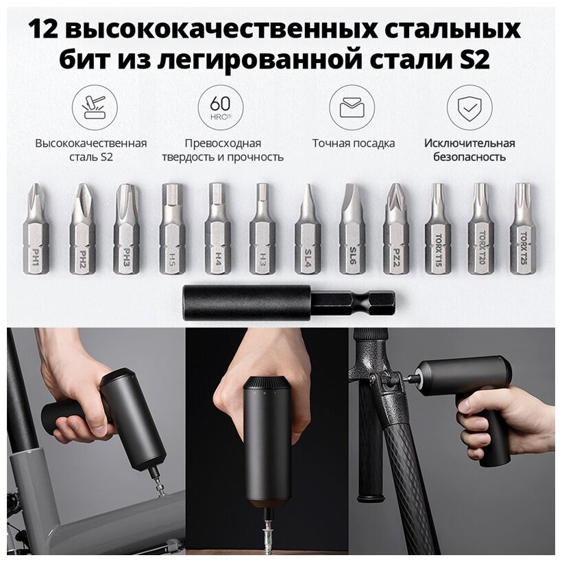 Charging time: 180 min; 24 different types of S2 steel bits in 9 general categories with a maximum hardness of 60 HRC* for strength and durability