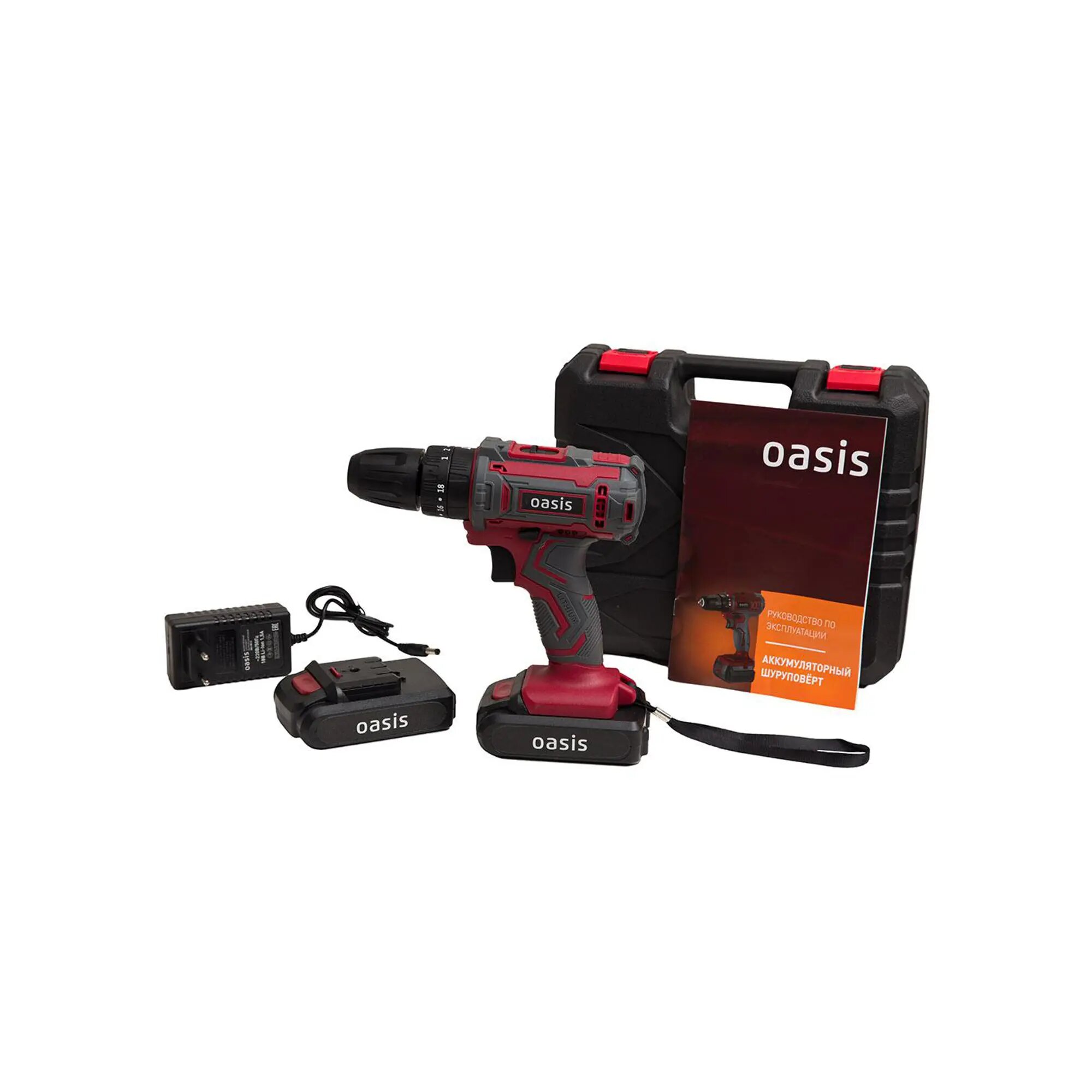 Screwdriver – 1 pc. Battery – 2 pcs. Charger – 1 pc. Case for storage and transportation – 1 pc. Operating manual – 1 pc.