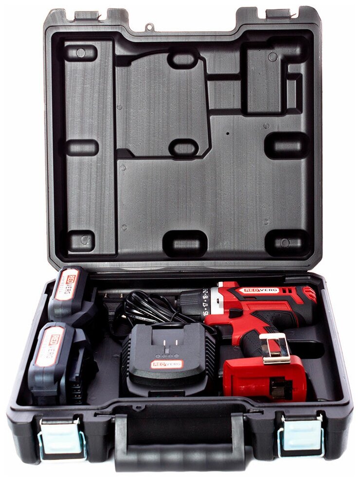 Power supply: battery, battery voltage: 18 V, maximum torque: 45 Nm, number of batteries included: 2, battery capacity: 2 Ah, chuck type: keyless, max. drilling diameter metal