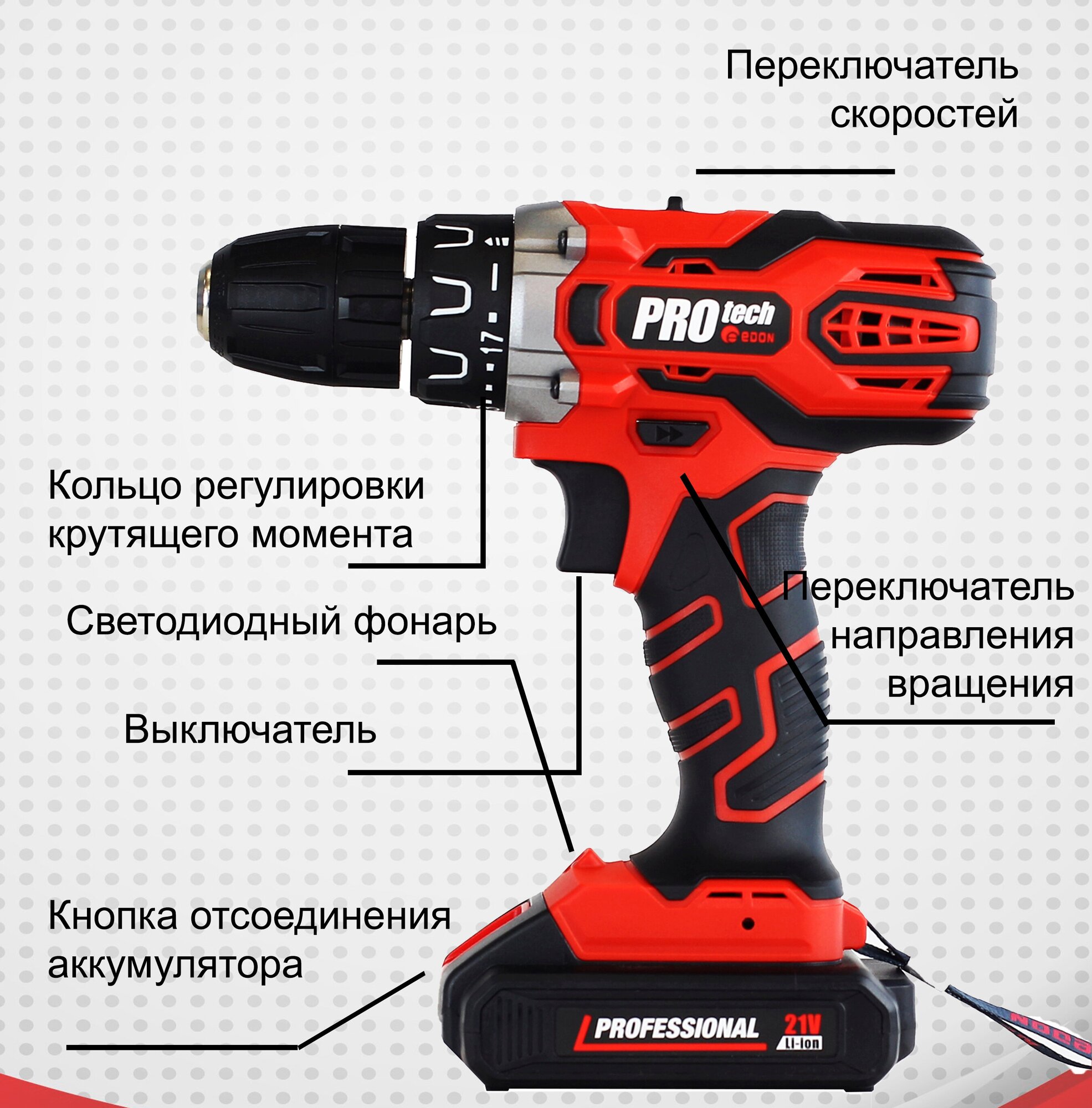 - screwdriver - Li-on battery - 1 pc. - set of accessories: metal drills, wood drills, set of bits and heads - charger - instruction manual