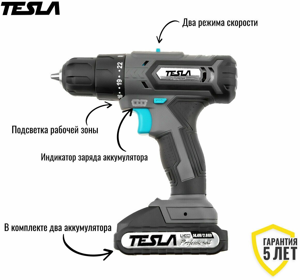 Power supply: battery, battery voltage: 14.4 V, maximum torque: 45 Nm, number of batteries included: 2, battery capacity: 2 Ah, chuck type: keyless, max. drilling diameter meta