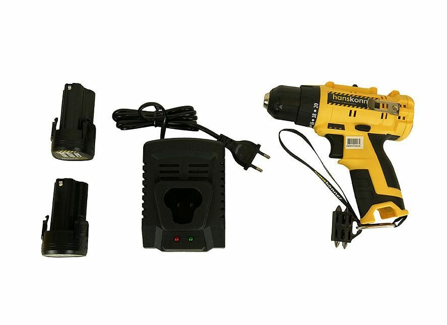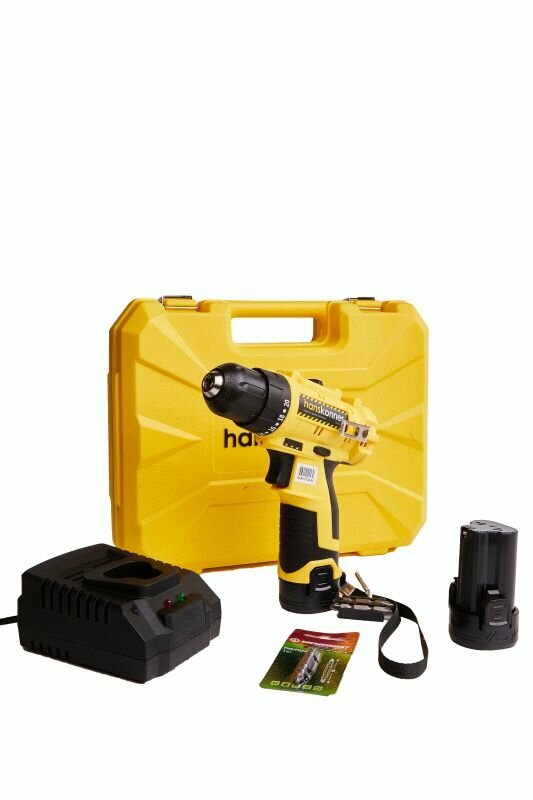 Cordless drill/driver, rechargeable battery 2 pcs, charger, double-ended bit 3 pcs, plastic case, user manual