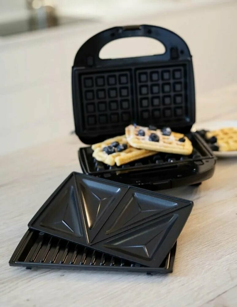 Type: appliance with interchangeable panels, panel type: waffles, grill, sandwiches, waffle panel type: Belgian, power: 790 W, features: non-stick coating, possibility of changing panels, overheating protection, work indicator