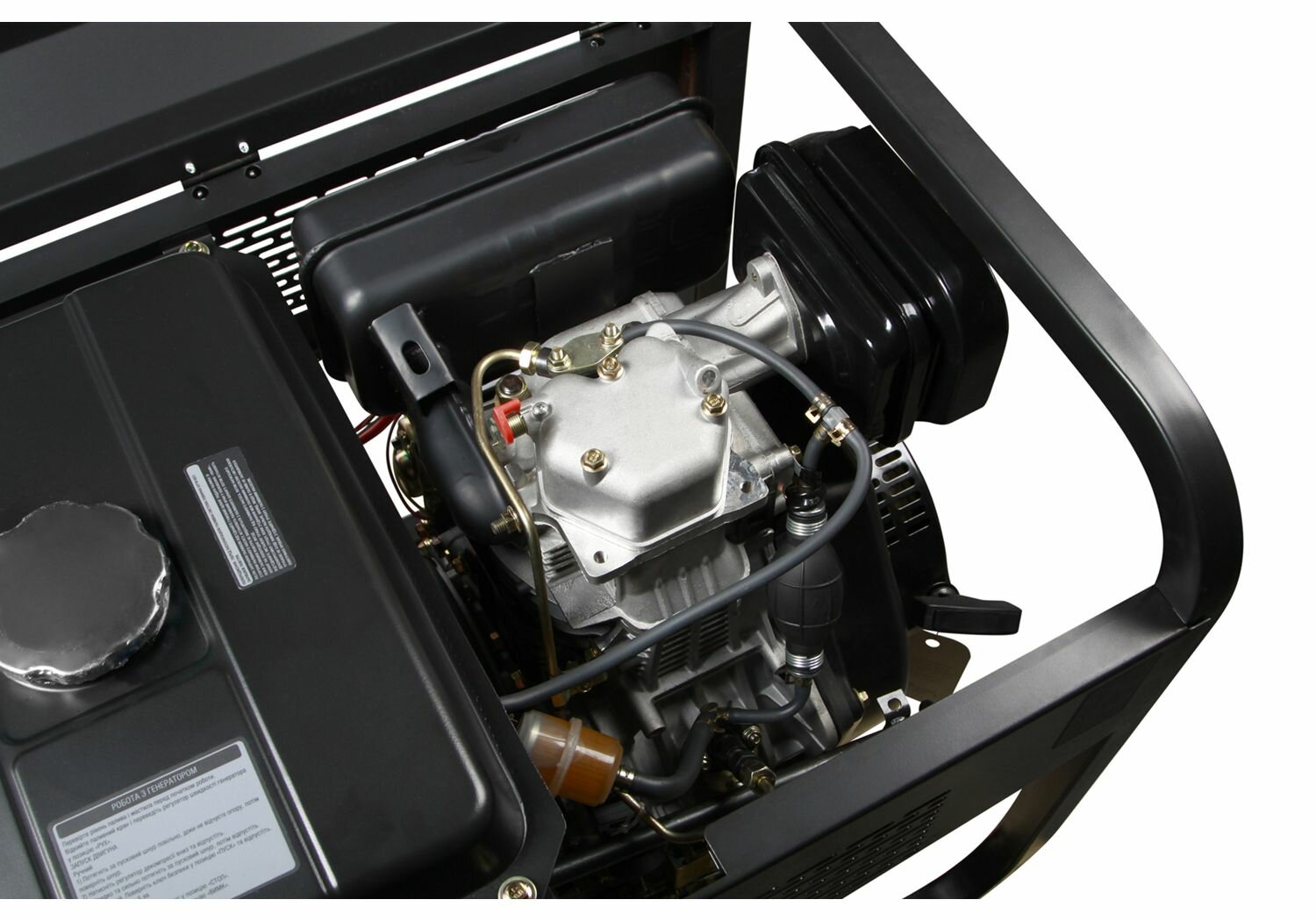 Operating time at 50% load on a full fuel tank: 14 hours; noise level at a distance of 7 m: 82 dB; frequency: 50Hz