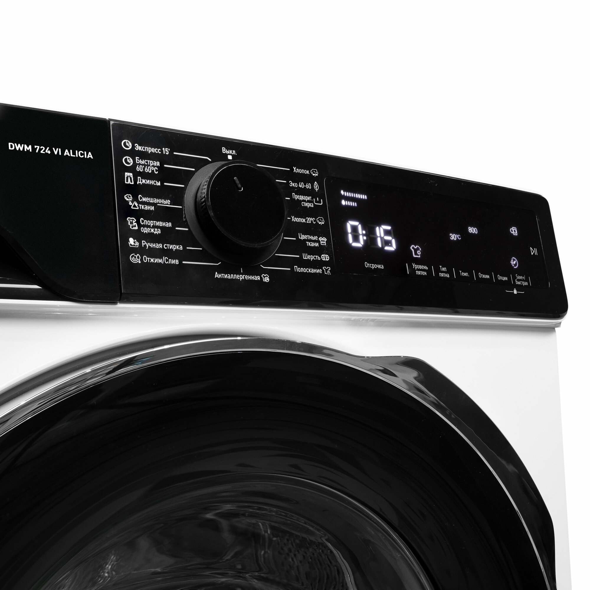 Spin speed selection, washing temperature selection, balance control, foam level control, delayed start, end of wash signal