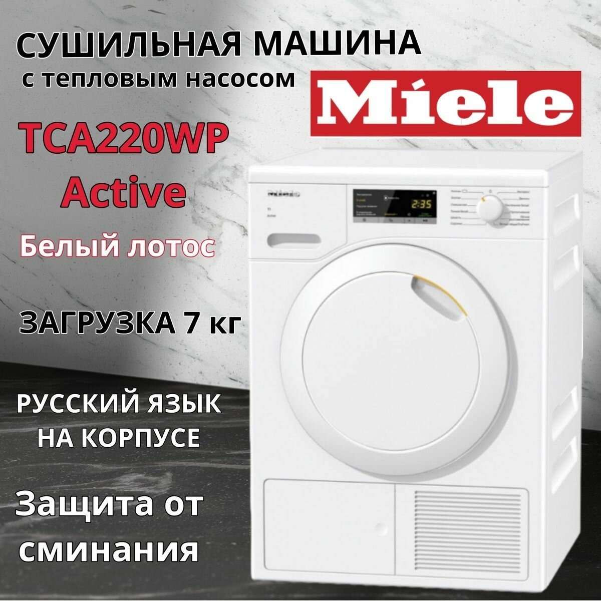 Dryer Miele TCA220WP Active white lotus; Instructions in Russian; Flavor bottle; Coupon for a second bottle of flavor