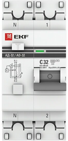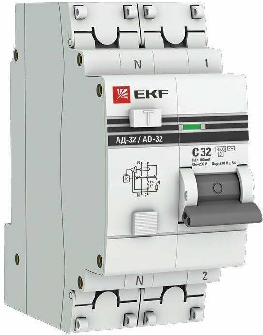 Automatic differential current switch Differential automatic 1p+N C 32A 100mA type AC 4.5kA AD-32 PROxima EKF EKF EKF DA32-32-100-pro