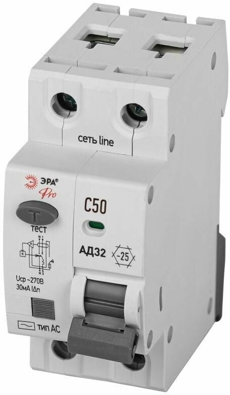 Automatic 1P+N C50 30mA AC type protection 230V RCBO 4.5kA PRO D32E2C50AC30P AD32 electronic B0057359
