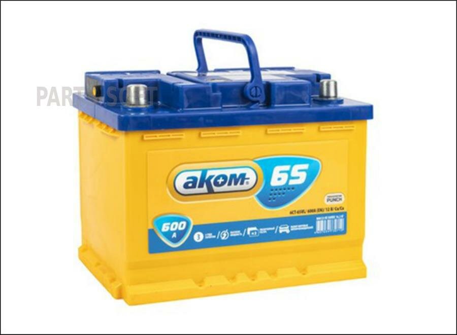 Battery, 65A/H, 580A, Polarity PP. Type Terminals Europe, 242x175x190 AKOM art. 4607034730710