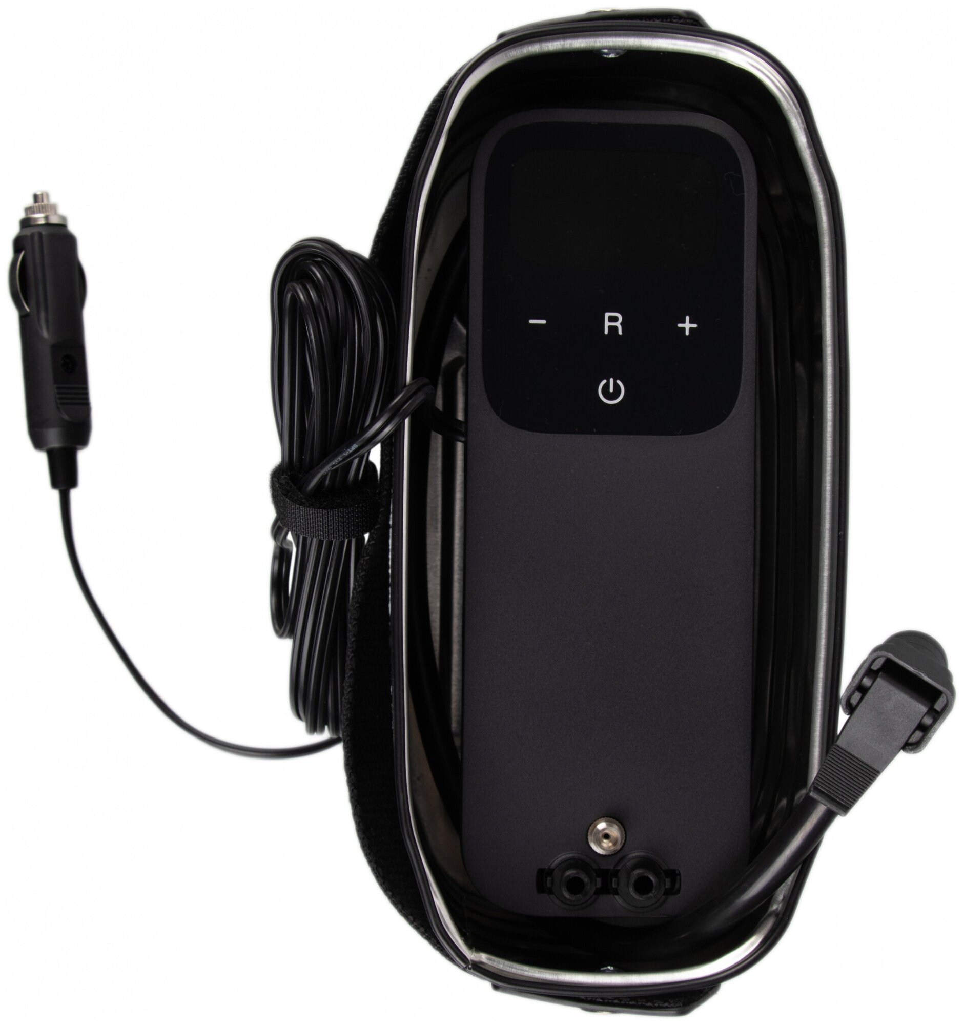 Compressor; power cable with cigarette lighter adapter 3.6 m; elastic rubber hose; 3 needle attachments