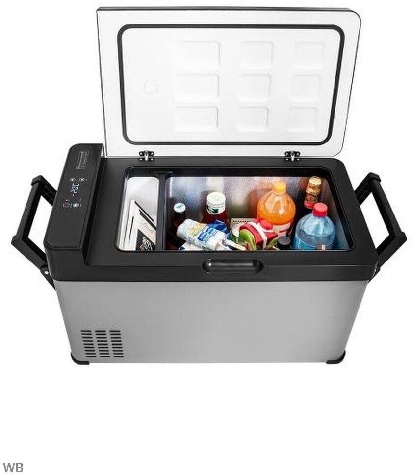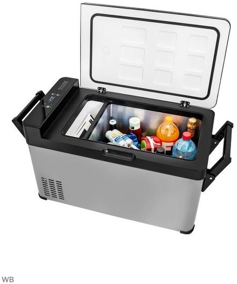 Operating principle: compressor, power: from the cigarette lighter, from the mains, voltage: 12 V, 220 V, 24 V, volume: 38 l, features: carrying handles, height: 74.20 cm, depth: 36 cm