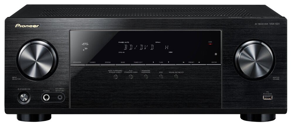 Type: AV receiver, standard: 5.1, front channel power: 35 W/channel, circuitry: solid-state, connectors and interfaces: 5.1CH input, stereo audio line input x 2, composite video input x 2, microphone input x 6, output ay