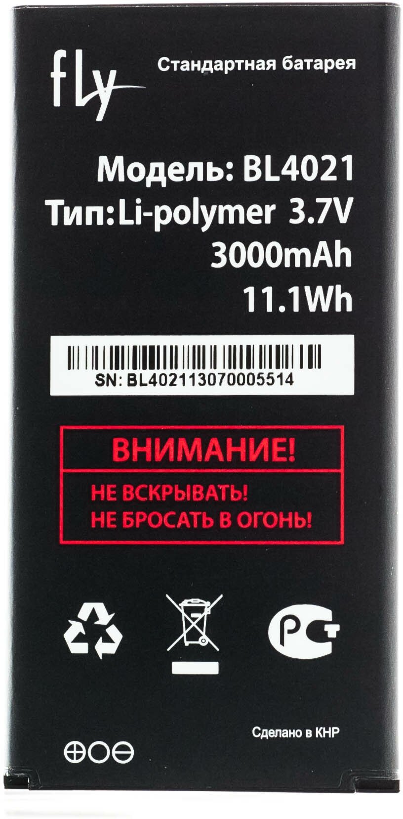 Phone manufacturer: Fly, capacity: 3000 mAh
