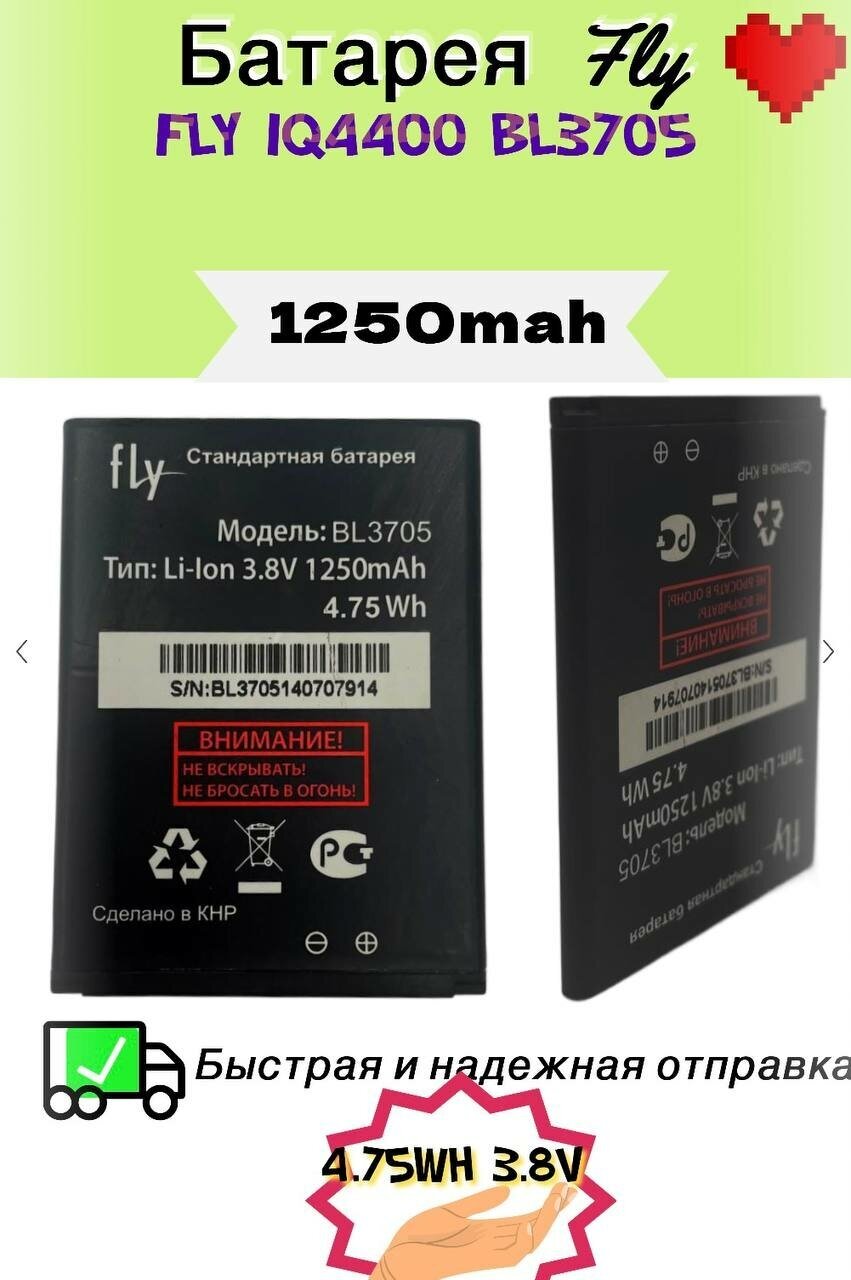BAT battery Fly IQ4400 BL3705 4.75Wh 3.8V 1250mah