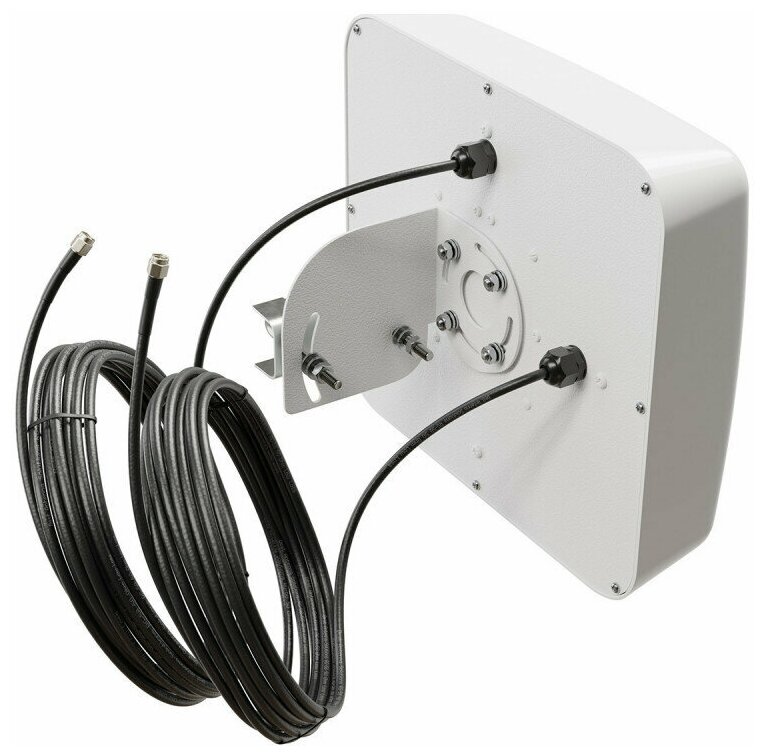 -Panel MiMo antenna 2х18dBi KAA18-1700/2700; -Two cable assemblies made of copper cable RG-6U 10 meters long for outdoor installation; -Two F-CRC9 adapters for connecting to a modem; -Wall bracket 0.3m for mounting the antenna; -University