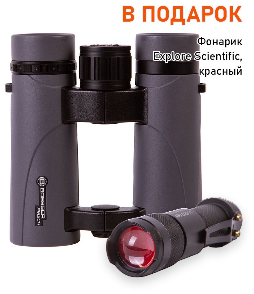 Bresser Pirsch ED 10x34 + Explore Scientific LED Flashlight with Red Light