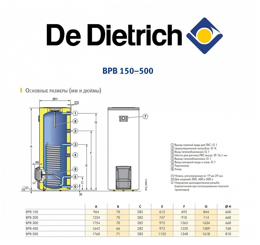 Water heater type: storage, tank volume: 385 l, heating method: indirect, installation: floor-mounted, connection: on the side, internal coating of the tank: enamel, depth: 760 mm, width: 0.76 mm, height: 1642 mm, control: mechanical