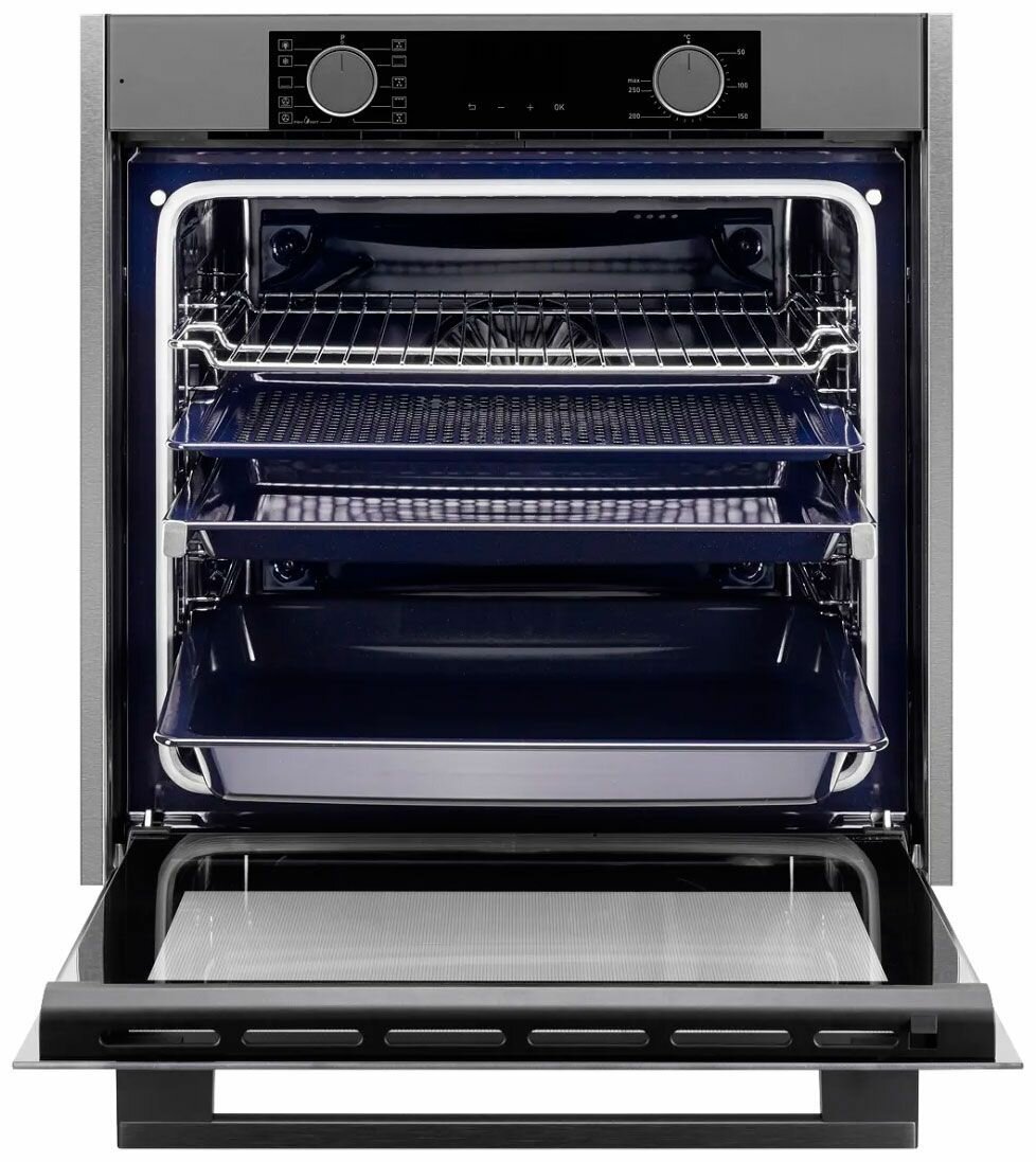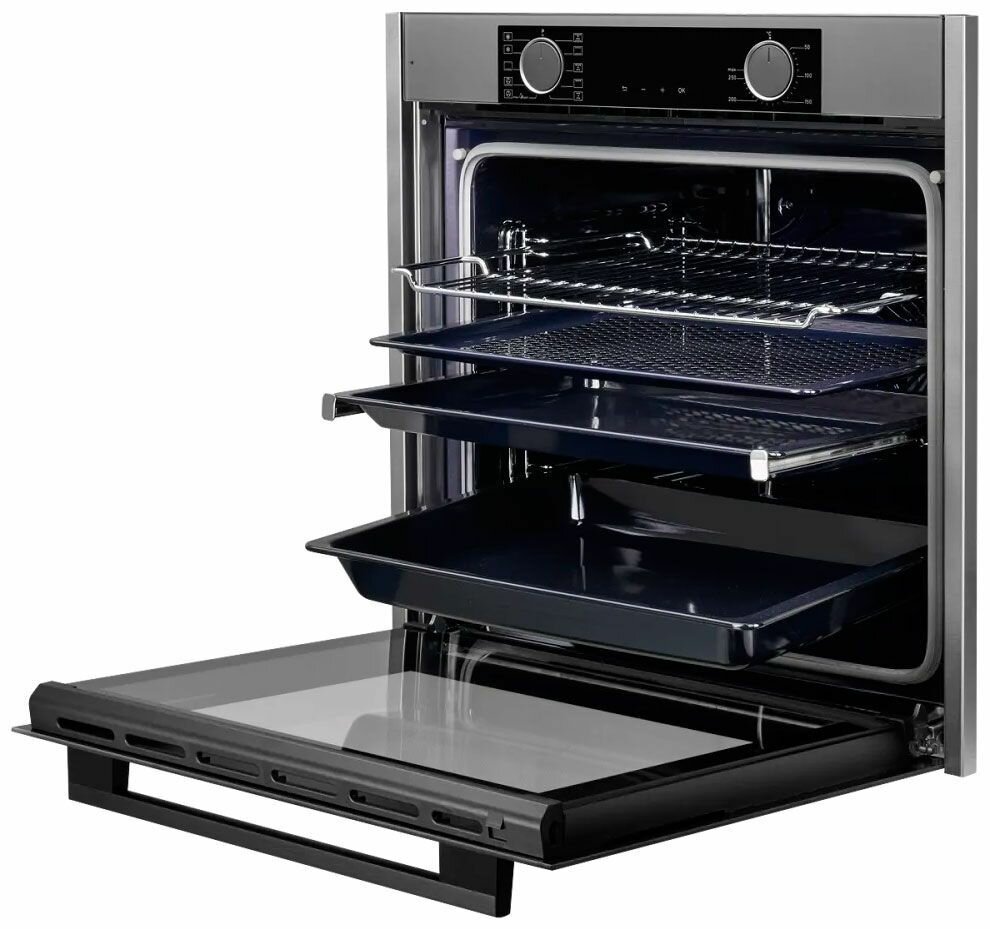 Oven type: electric, installation: independent, width: 59.50 cm, convection, grill, grill type: electric, oven cleaning: hydrolysis, oven volume: 80 l, number of oven door glasses: two, switches: turn