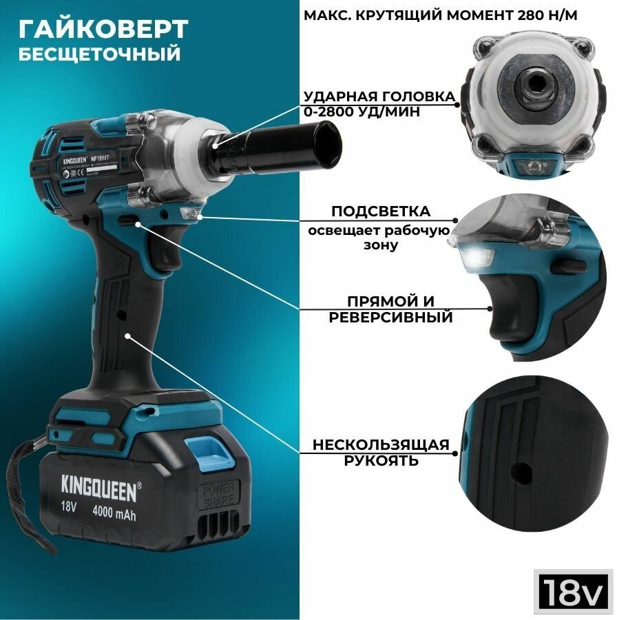 Impact battery with a set of accessories 18V, 280 Nm / Screwdriver