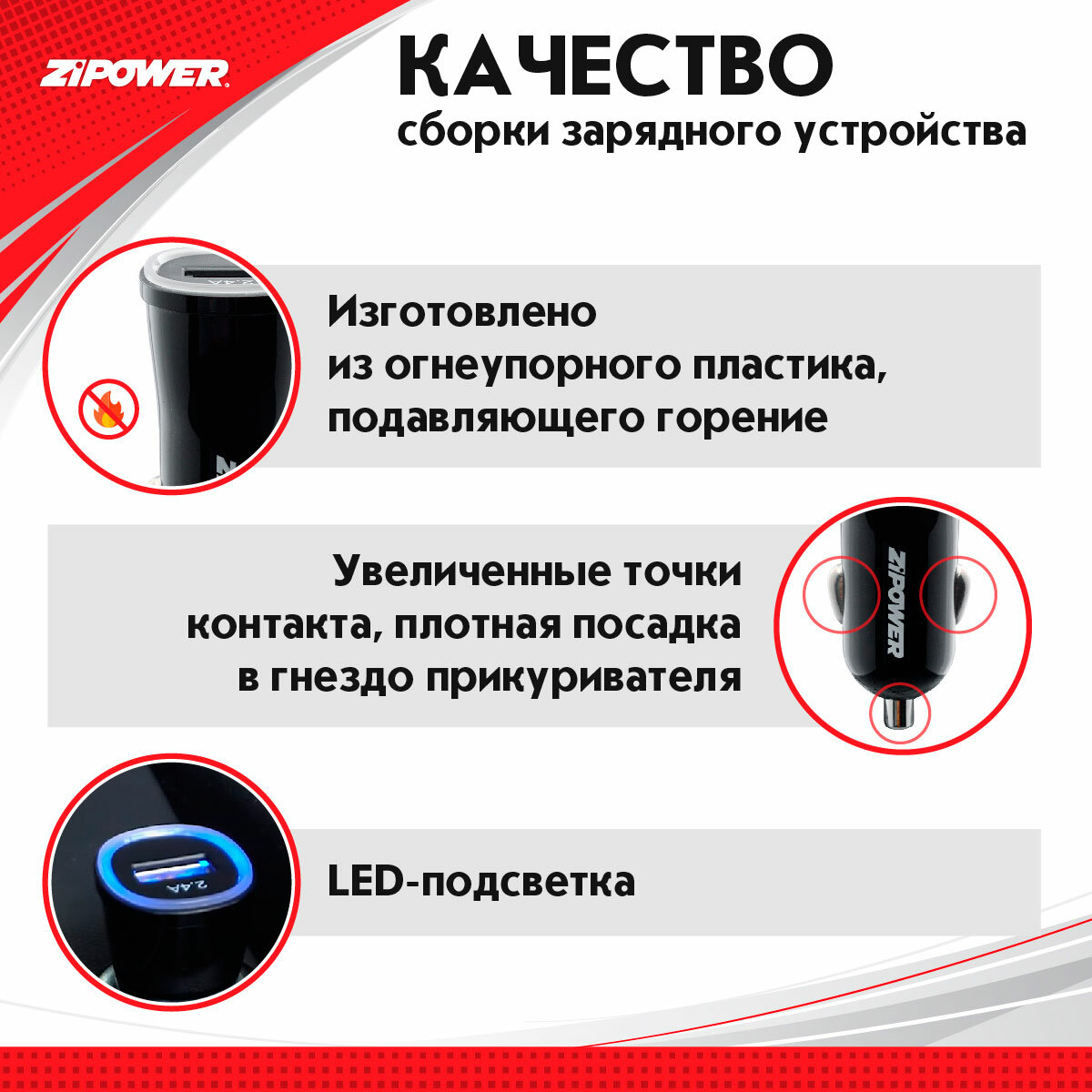 Cable connector: USB Type-A, number of connectors: 1, maximum output current: 2.40 A, features: overheat protection, overvoltage protection, backlight, cigarette lighter splitter, shockproof housing