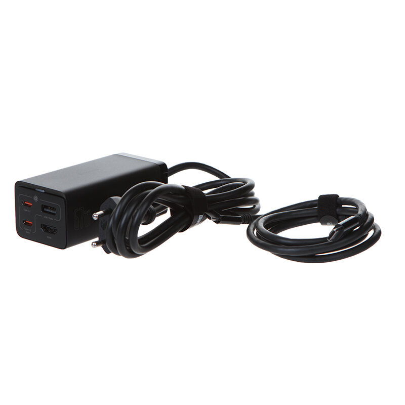 Cable connector: USB Type-A, USB Type-C, USB Type-C - USB Type-C, number of connectors: 4, fast charging, maximum output current: 3 A, maximum output power: 65 W, cable included, features : GaN, overheat protection