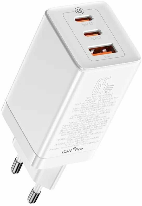 AC charger Baseus CCGP050102 white 1 USB 2 Type-C 65W GaN QC 3.0/PD