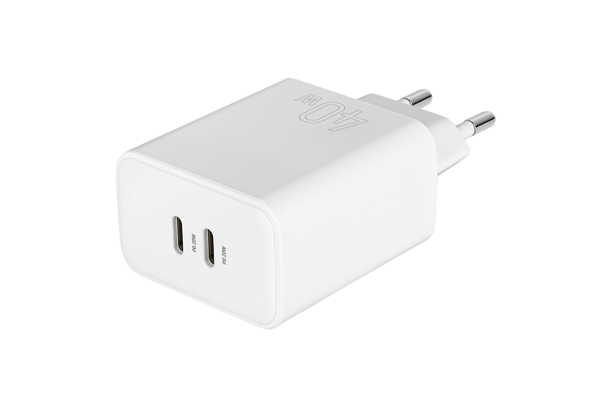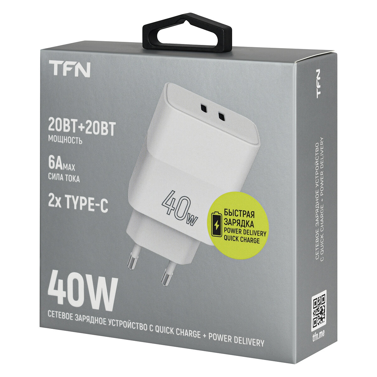 AC charger TFN 2x USB-C, QC+PD 40 W, white