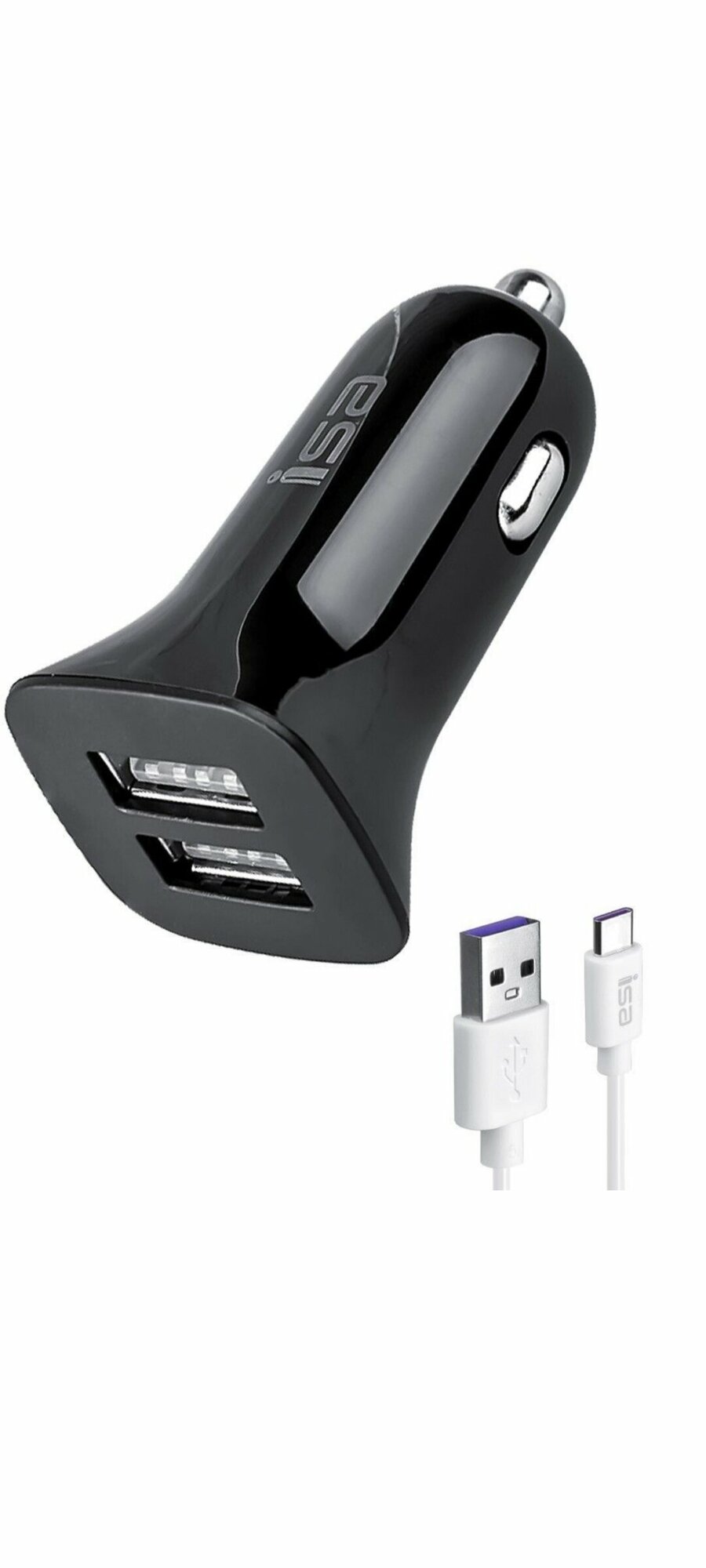 Micro USB car charger for 2 USB 2.4A AZ14 ISA black