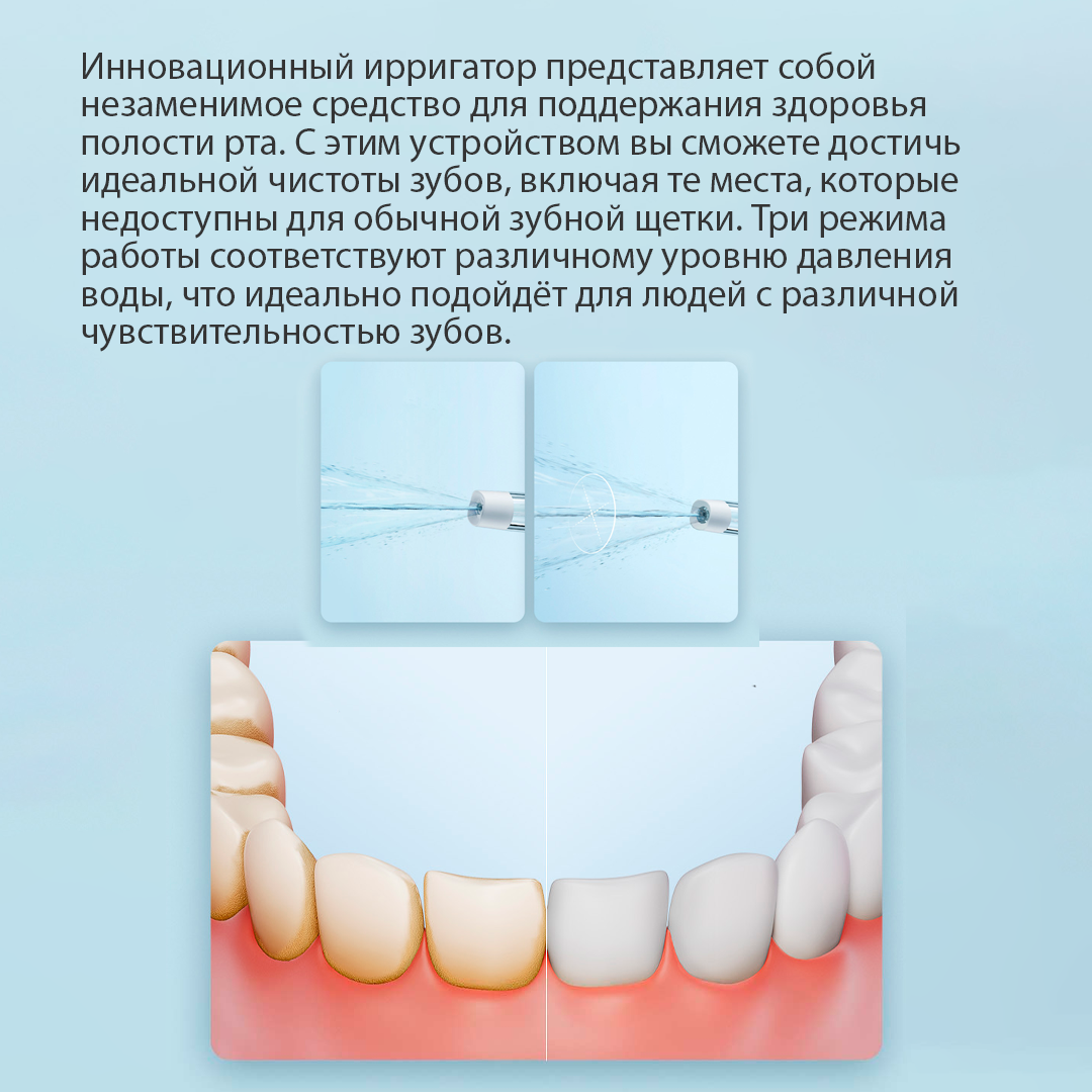Powered: by battery, type: dental center, principle of operation: microbubble technology, nozzles: for jet cleaning, brush head, periodontal for gums, number of irrigator modes/adjustments: 3, modes: page