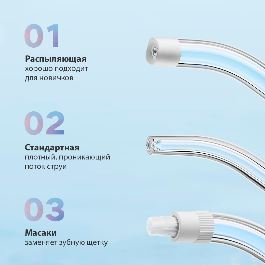 For jet cleaning, for cleaning implants and crowns, for cleaning the tongue, nasal, orthodontic for brackets, periodontal for gums