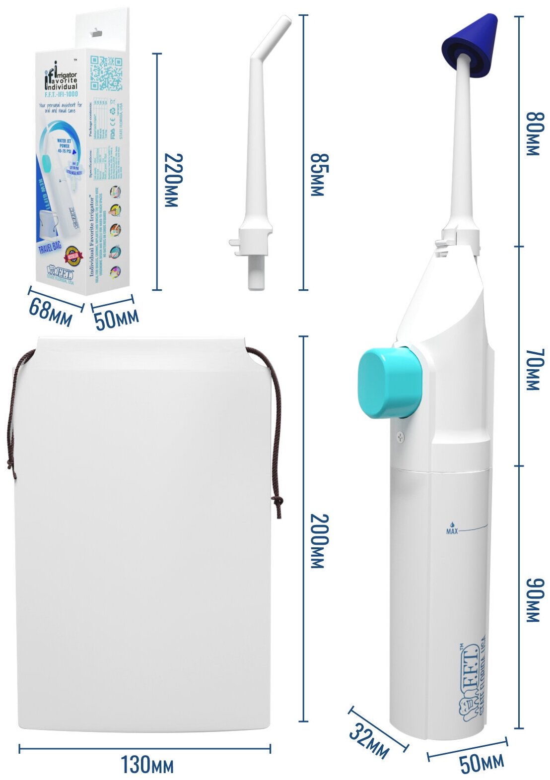 Portable oral and nasal , mechanical, 50ml, 2 nozzles and travel case as a gift