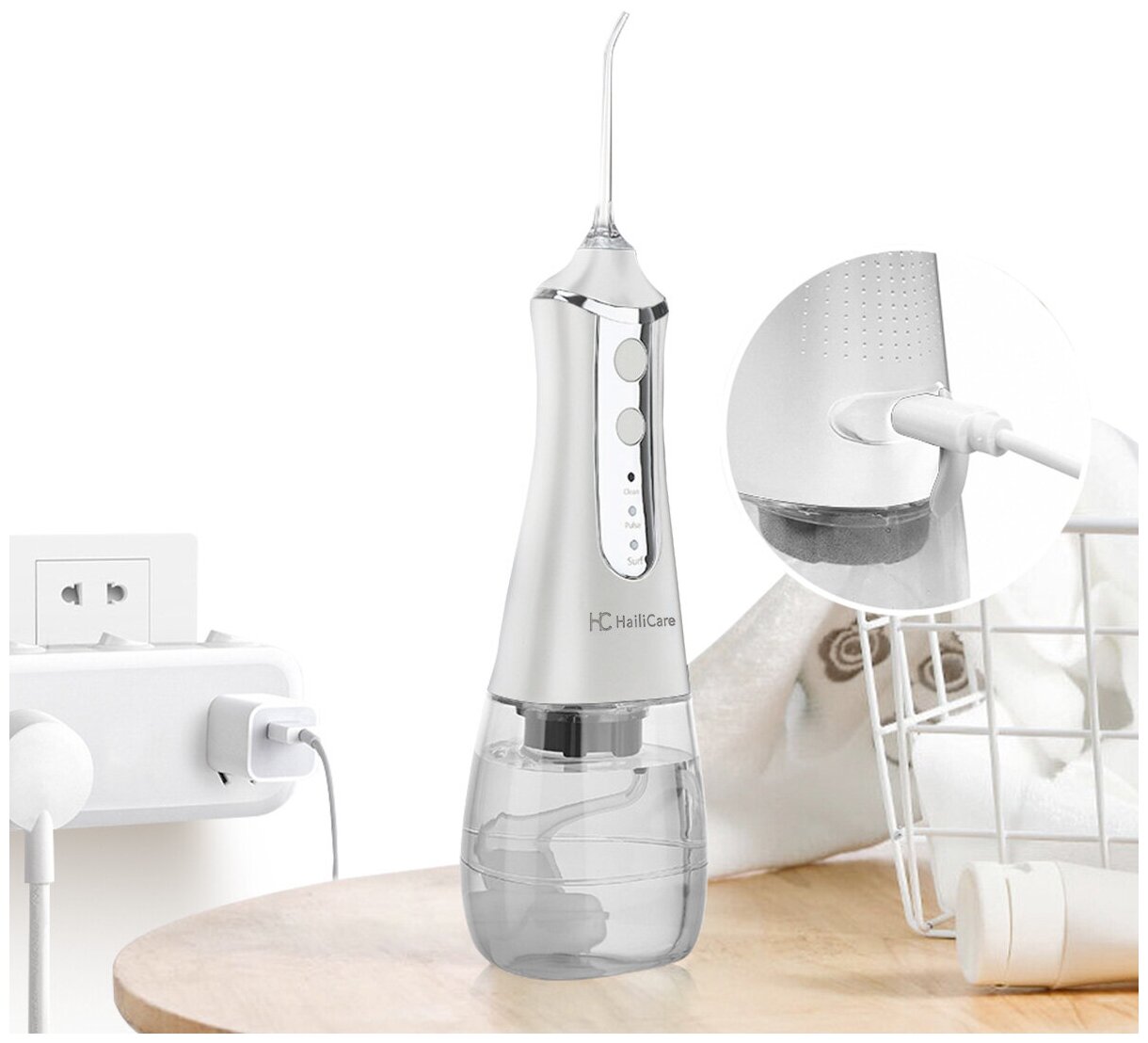 Power supply: battery-powered, type: irrigator, operating principle: mono-jet, nozzles: for jet cleaning, for cleaning implants and crowns, orthodontic for braces, periodontal for gums, reservoir capacity: 350