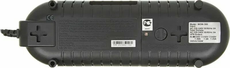 Total output power: 300 VA, type of power output connectors: CEE 7 euro socket, number of UPS power output connectors: 2, total number of power output connectors: 3, operating time at full load: 4 min