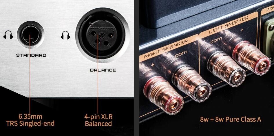 Type: integrated amplifier, standard: stereo, front channels power: 8 W/channel, circuitry: class A, tube, connectors and interfaces: audio line stereo input, balanced stereo line input