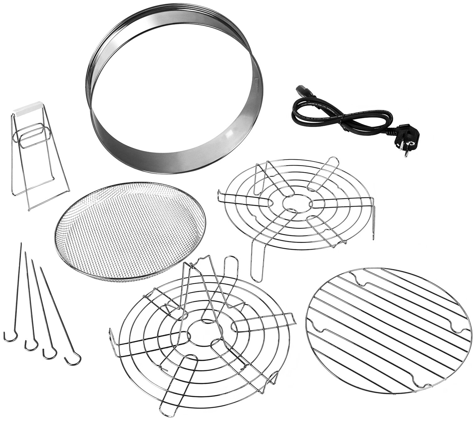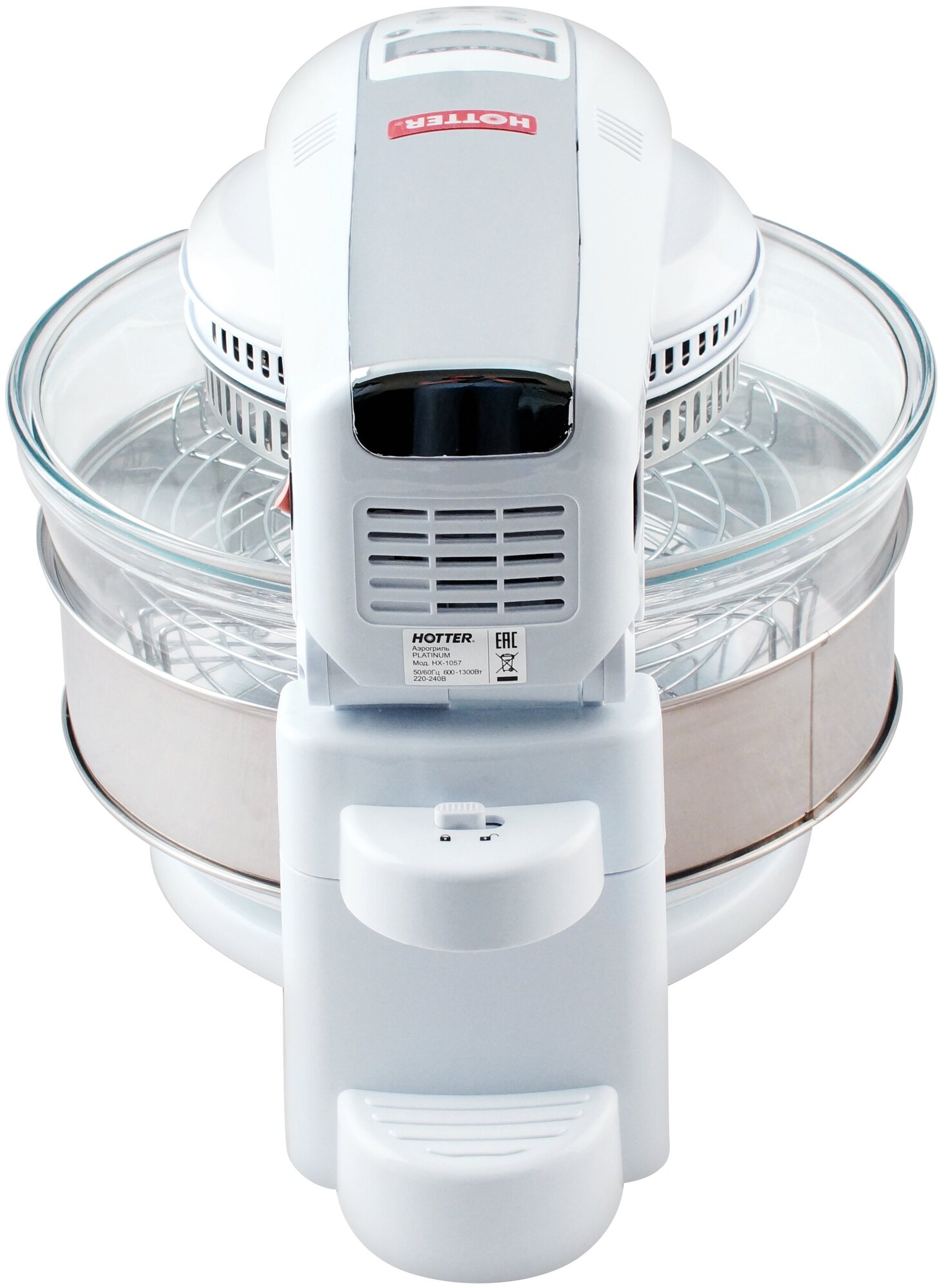 Power off button; performance under voltage drops; delayed start up to 10 hours; temperature control: 65-260°С; 3 convection speeds; removable flask and glass cover; equipment: ring-led