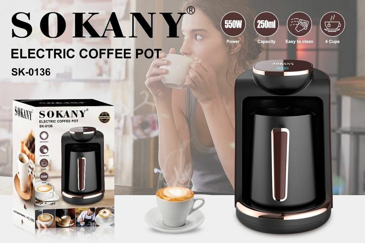 Device type: coffee maker, type: electric Turk, type of coffee used: ground, type of drink: Americano, hot chocolate, cappuccino, Turkish coffee, espresso, built-in coffee grinder, additional functions: auto-off