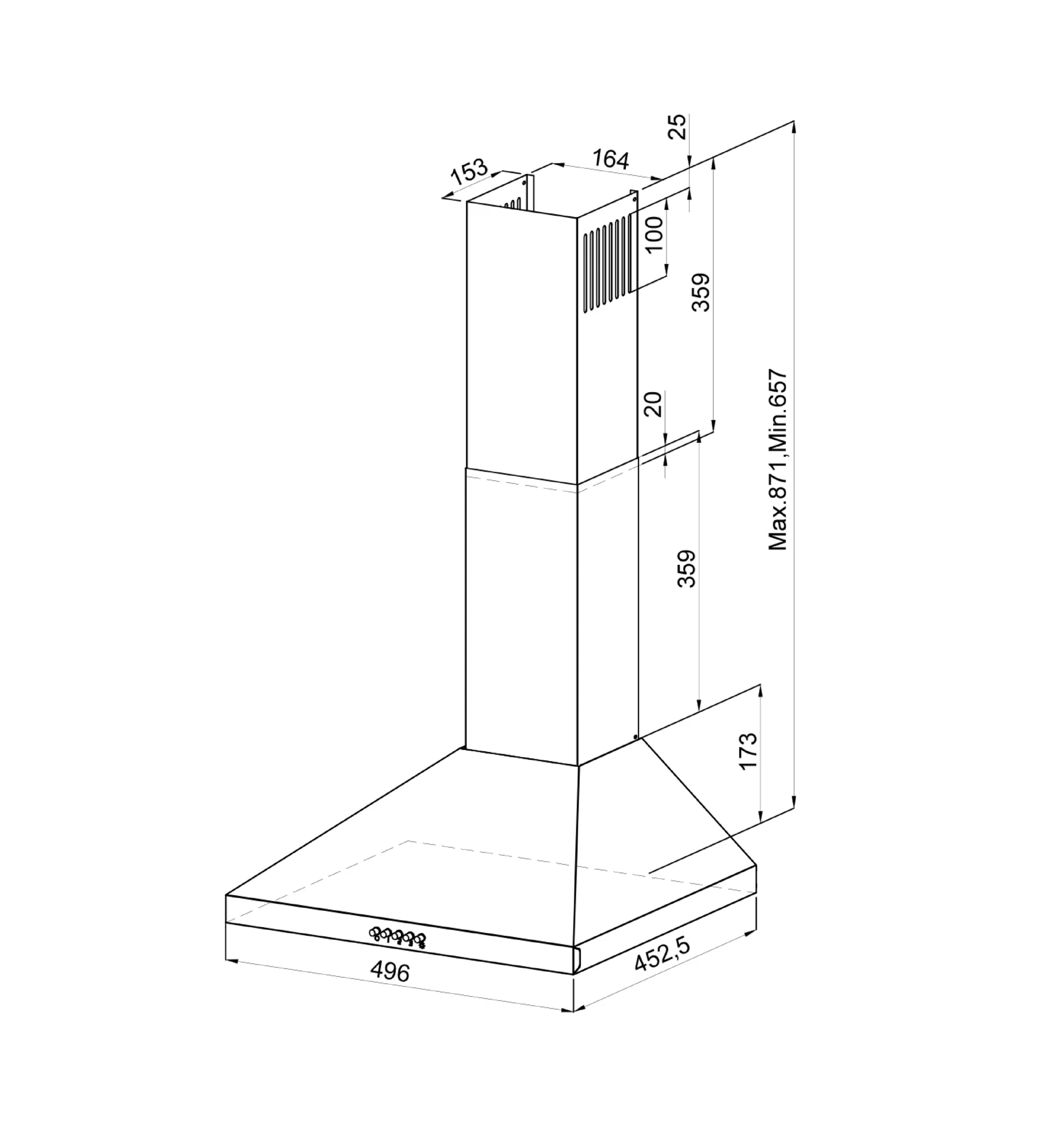 Form factor: dome, operating modes: exhaust / circulation, maximum productivity: 500 m³/hour, installation type: wall-mounted, lighting type: halogen lamp, installation width: 90 cm, additional functions: intensive