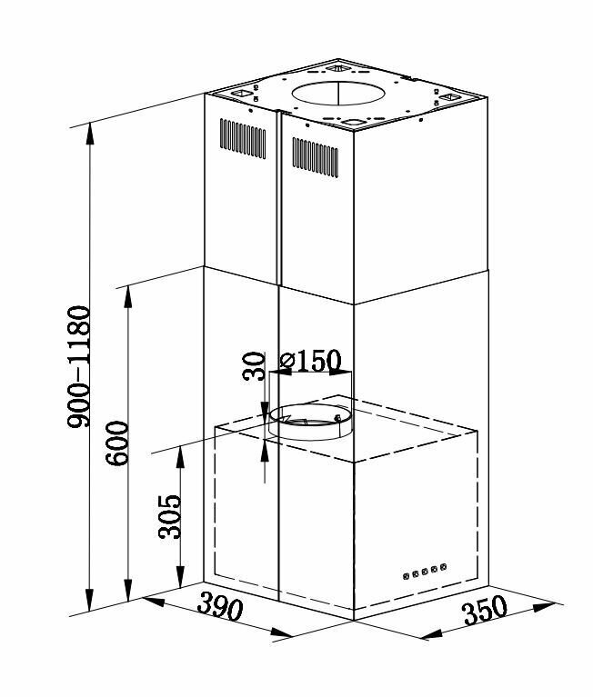 Width: 35 cm, depth: 39 cm, operating modes: drain / circulation, installation location: in the ceiling, maximum productivity: 1050 m³/hour, installation type: island, filter: grease, control type: electronic, lighting type