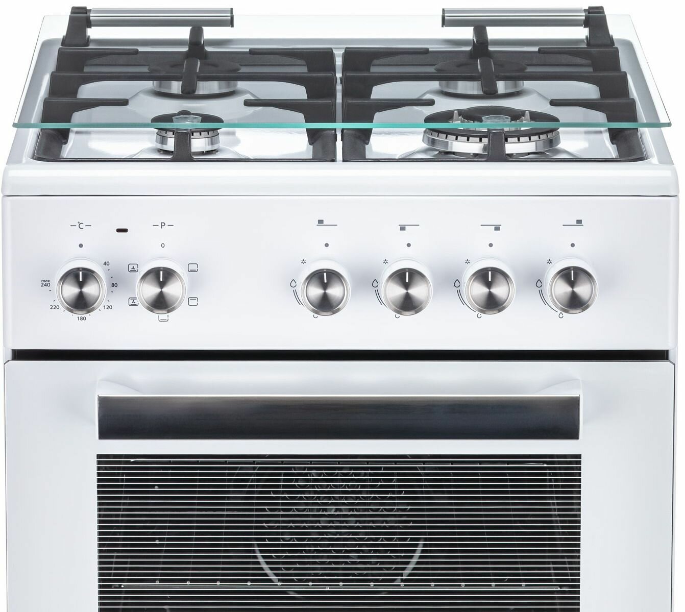 Type: combined, oven type: electric, hob type: gas, work surface material: enameled steel, depth: 60 cm, number of burners: 4, convection in the oven, grill, design features