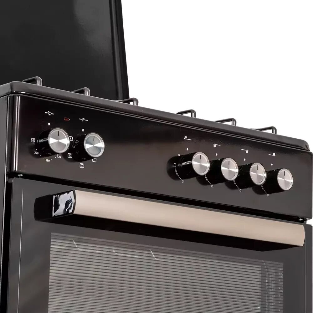 Type: gas, oven type: electric, hob type: gas, work surface material: enameled steel, number of burners: 4, convection in the oven, additional functions: thermostat, oven cleaning: