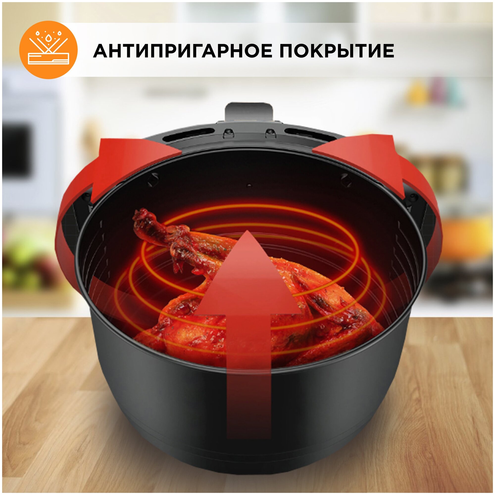 3D heating, non-stick coating, 60 min timer; temperature control, removable basket, removable bowl