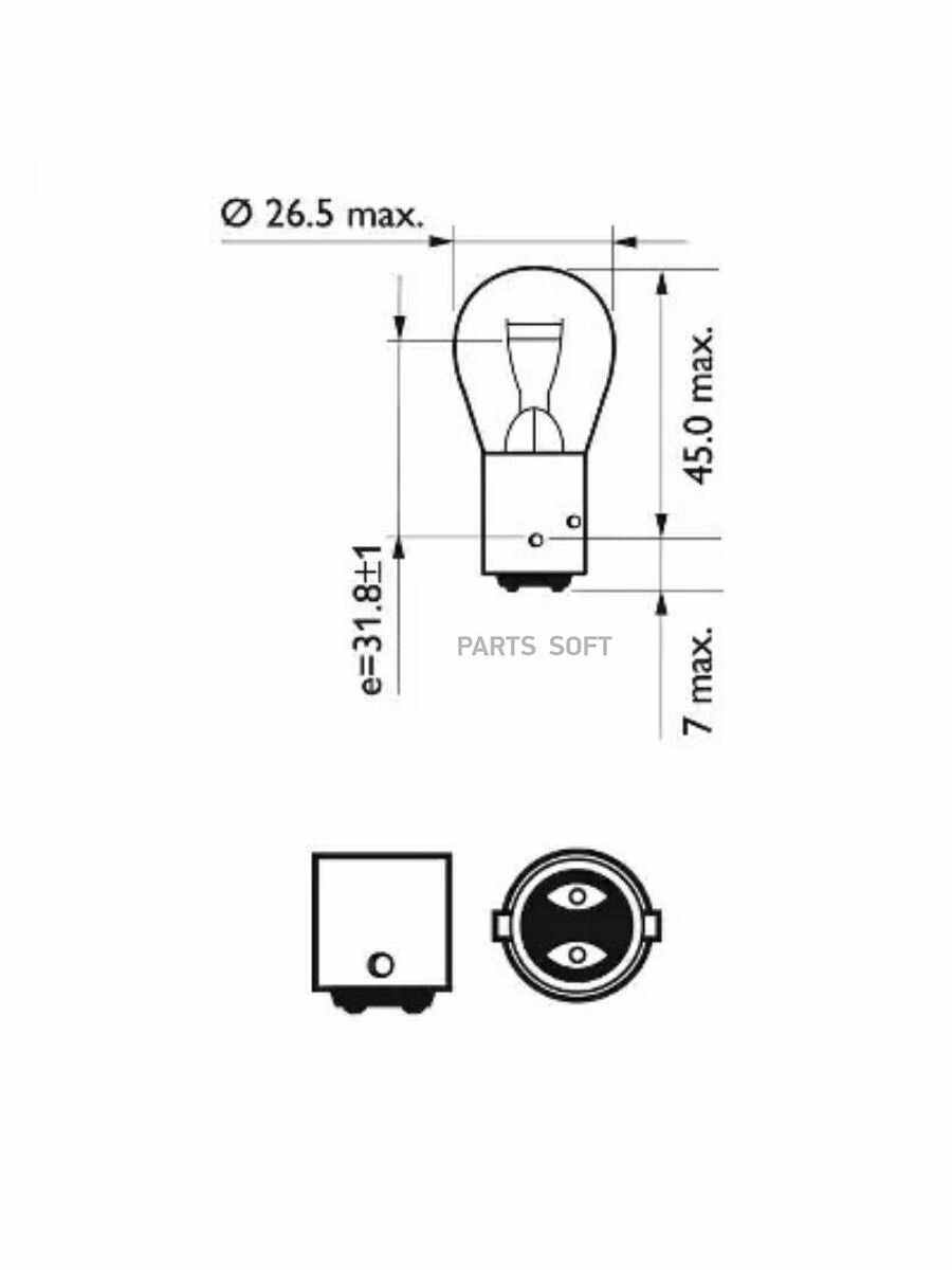 Type: incandescent, size: P21/4W, P21W, purpose: side lights, fog lights, brake lights, front turn signals, reverse lights, base: BAZ15d, luminous flux: 440 lm, power: 5.25 W, voltage: 12 IN