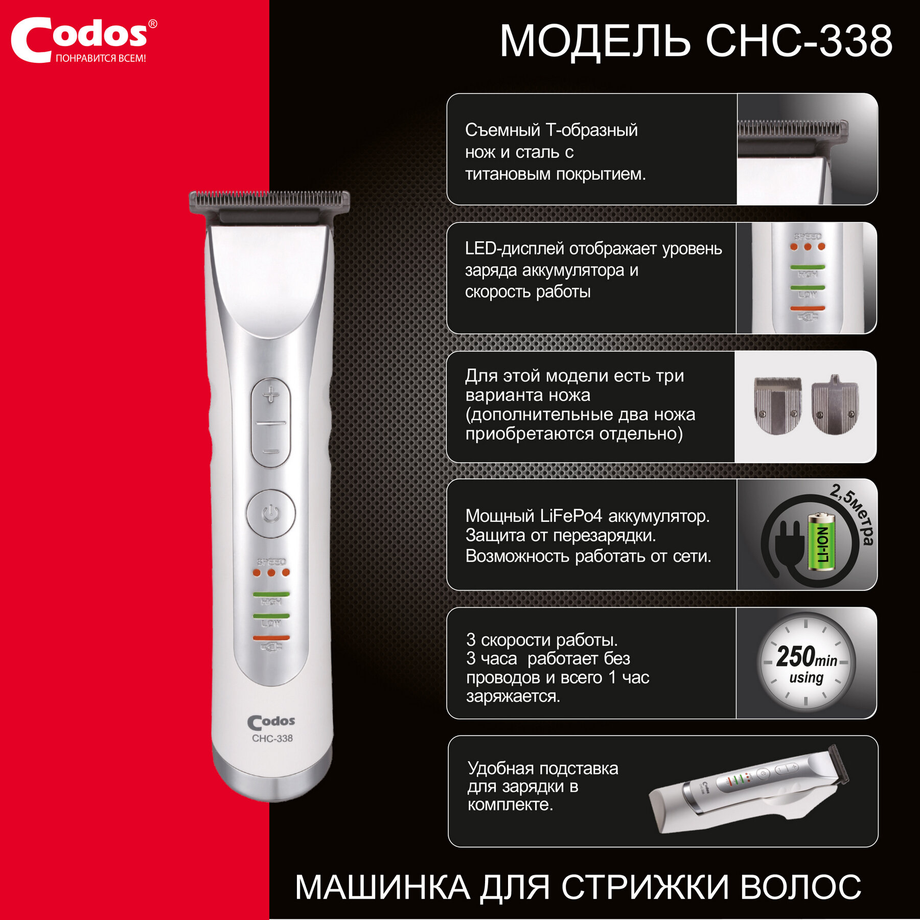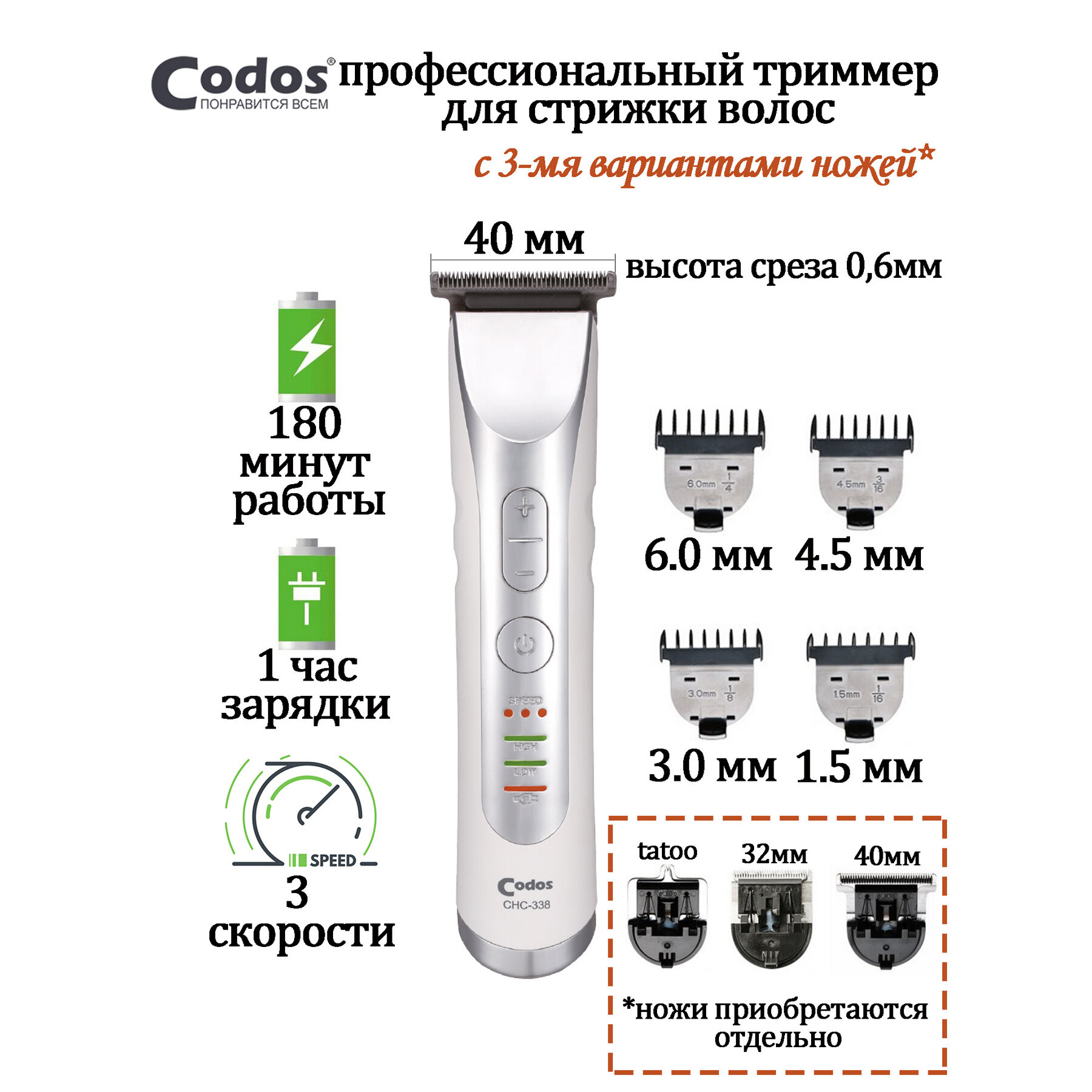 Purpose: for beard and mustache, for cutting hair, type: trimmer, power supply: autonomous/from mains, battery type: own battery, minimum cutting length: 0.60 mm, maximum cutting length: 6 mm, blade material