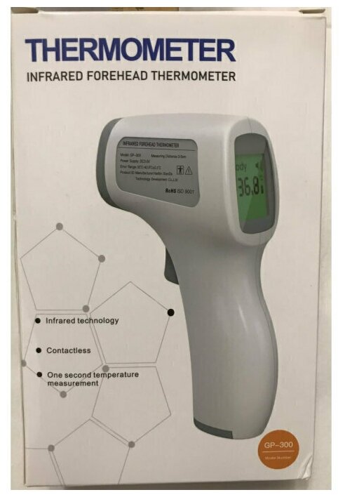 Infrared, electronic thermometer, measurement method: infrared, electronic, features: automatic shutdown, sound signal, measurement memory, display backlight, measurement time: 1 s, error: 0.20 °C