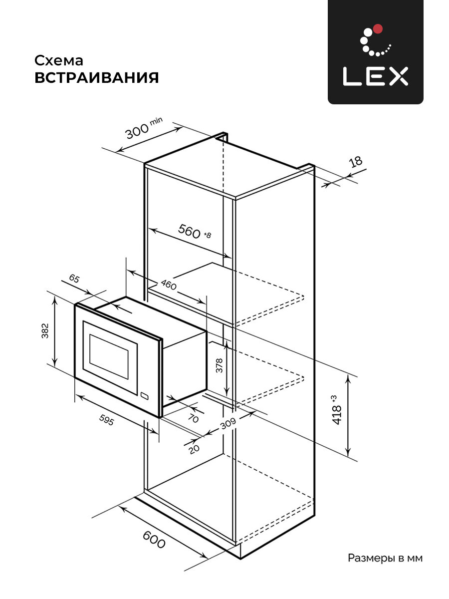 Location: built-in, volume: 20 l, switches: push-button, rotary clock, touch, microwave power: 700 W, inner chamber coating: stainless steel. steel, width: 59.50 cm, depth: 32.90 cm, height: 38.20 cm, operating modes