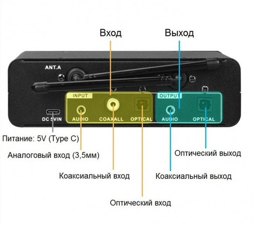 Signal receiver base, 2 Handheld radio microphones, miniJack 3.5-2RCA cable, miniJack 3.5-miniJack 3.5 cable, USB-Type C power cable, coaxial cable, optical cable - 2 pcs, anti-rollers - 2 pcs.