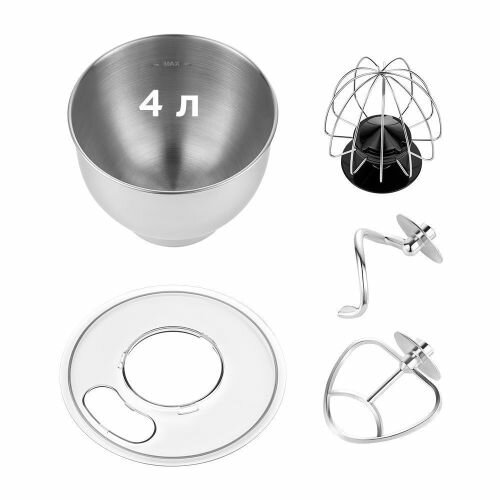 Type: planetary stationary, power: 800 W, attachments: whisk, bowl material: stainless steel, bowl volume: 4 l, additional modes: pulse mode, number of speeds: 6, power cord length: 0.90 m
