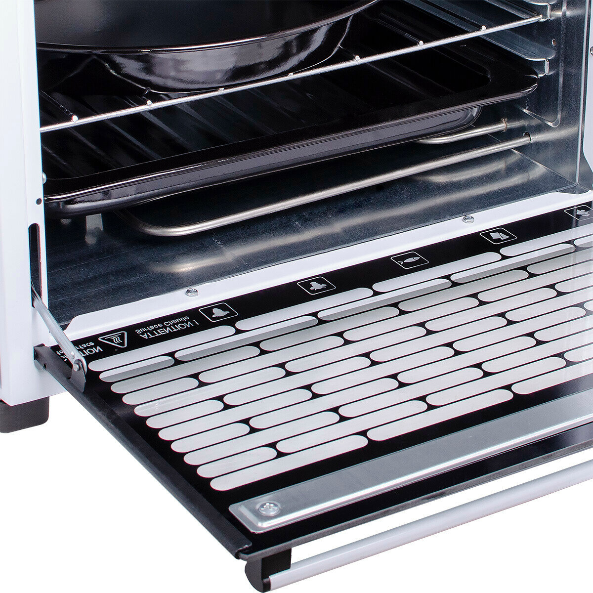 Contents: electric oven, grill grate 1 pc., baking sheet 1 pc., handle for the baking sheet 1 pc., instruction manual